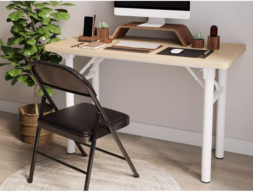 熱推簡易可折疊長方形辦公桌(白胡桃/圓管,白架)(尺寸:120*60CM)