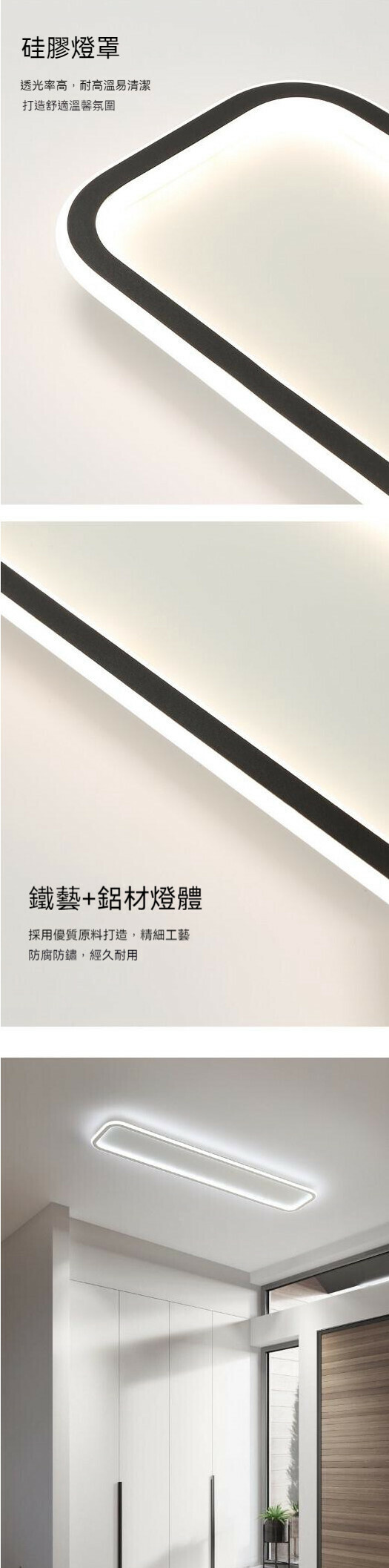 熱推簡約長方形過道走廊吸頂燈(黑色-80*20cm)【無極調光】