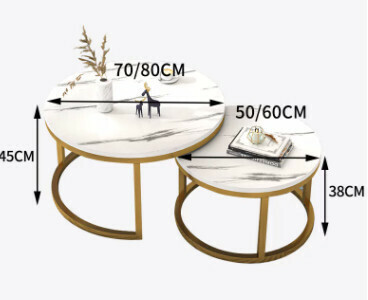 熱推簡約圓桌茶幾(白色大理石紋+金色架)【尺寸:長50cm*寬50cm*高38cm】