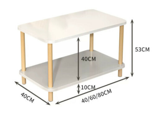 熱推簡易實木腿茶幾(三層-暖白色)【尺寸:長60*寬40*高53cm】
