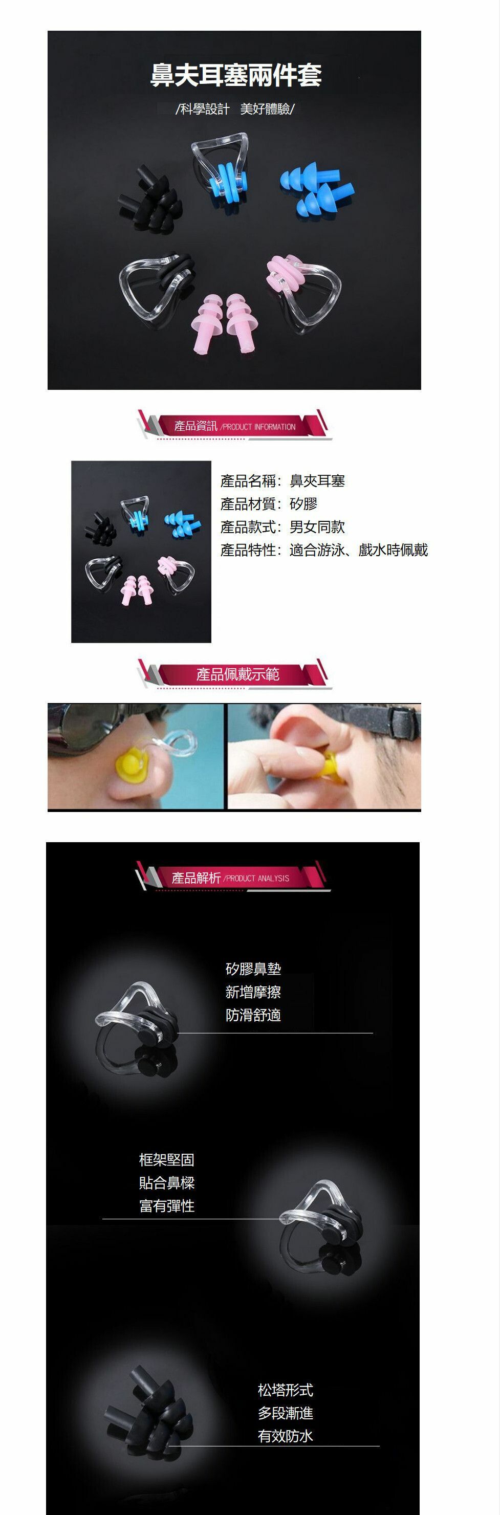 熱推【特價品】兒童防嗆水防進水耳塞夾鼻兩件套(深藍)