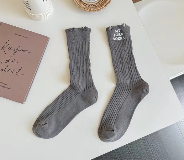 熱推(10雙裝)女透氣無骨中筒破洞襪(黑色)(均碼)