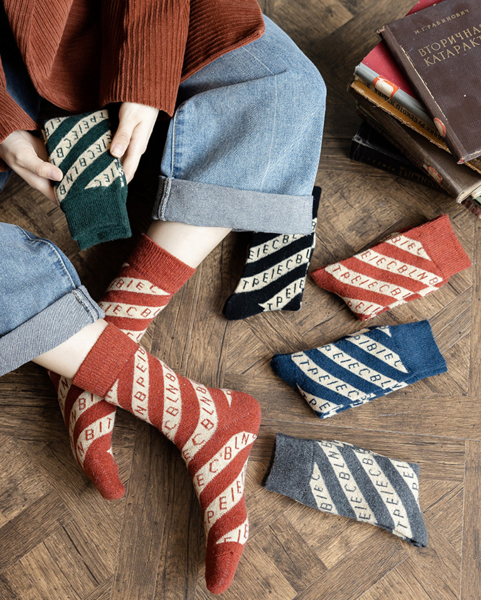 熱推(2雙裝)字母條紋羊毛保暖舒適女襪(灰色)(均碼)