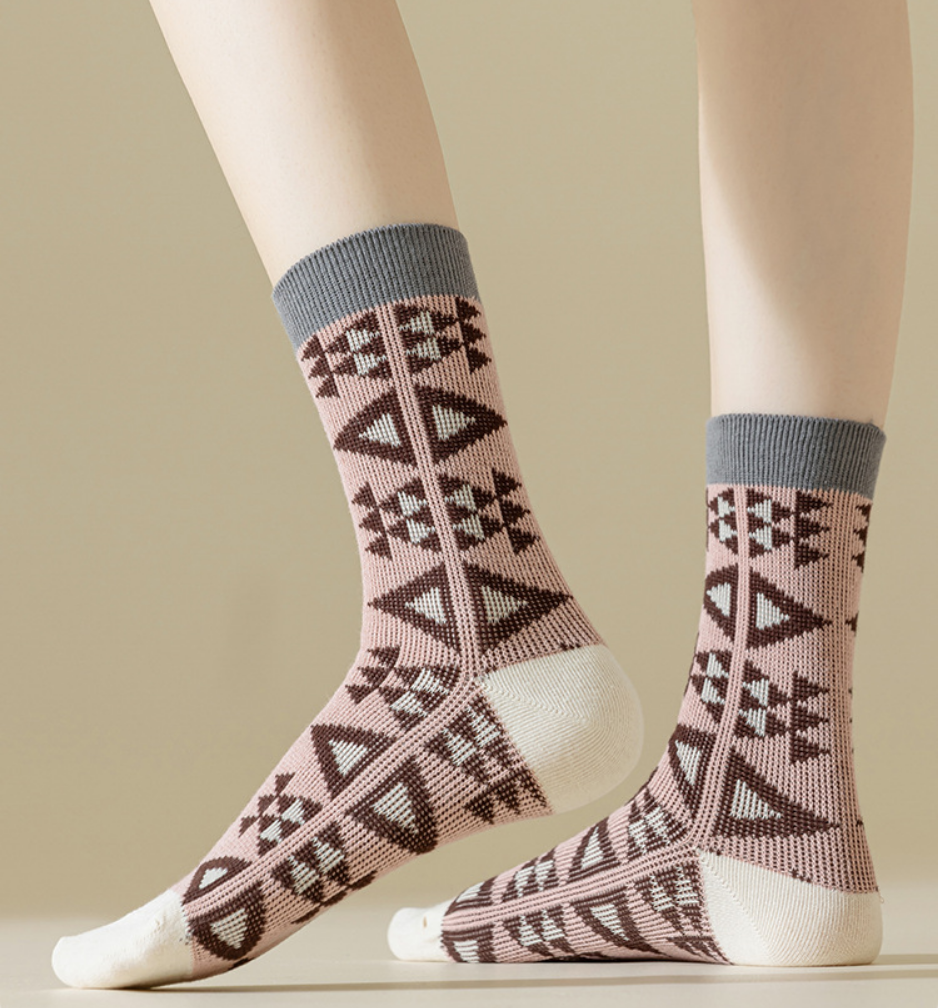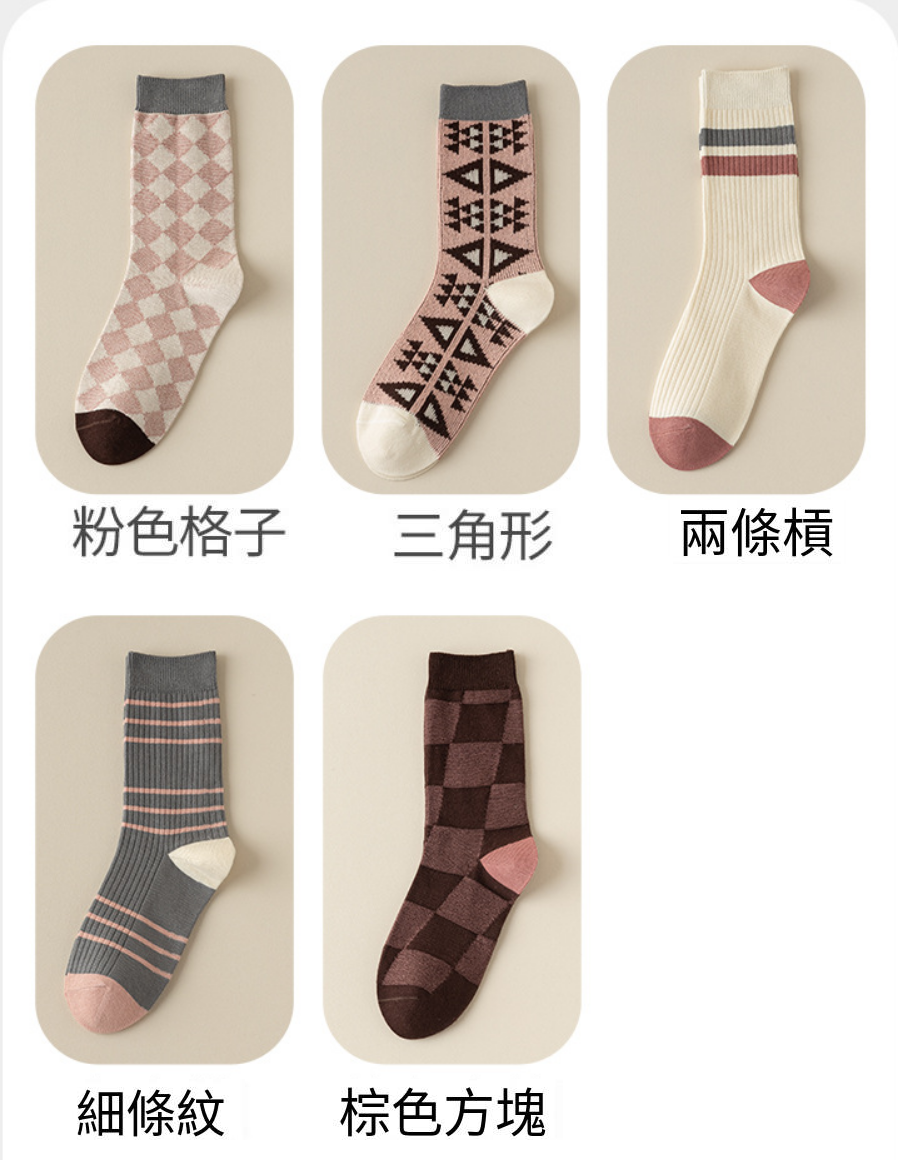 熱推(2雙裝)女復古雙針中筒襪(粉色格子)(均碼)
