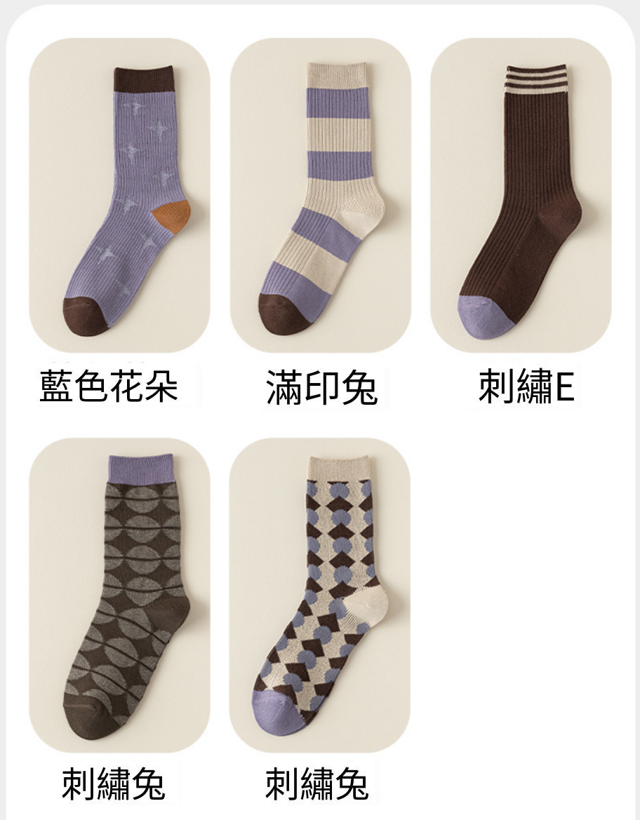 熱推(2雙裝)女百搭復古中筒襪(紫色條紋)(均碼)