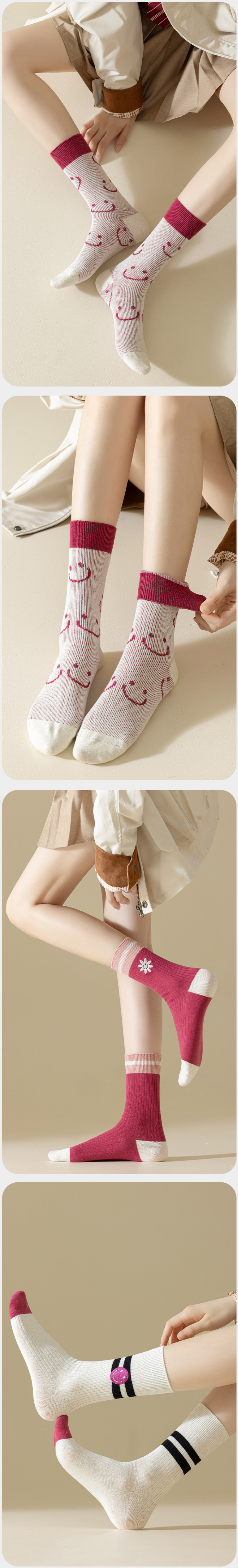 熱推(2雙裝)女透氣吸汗中筒襪(滿印笑臉)(均碼)