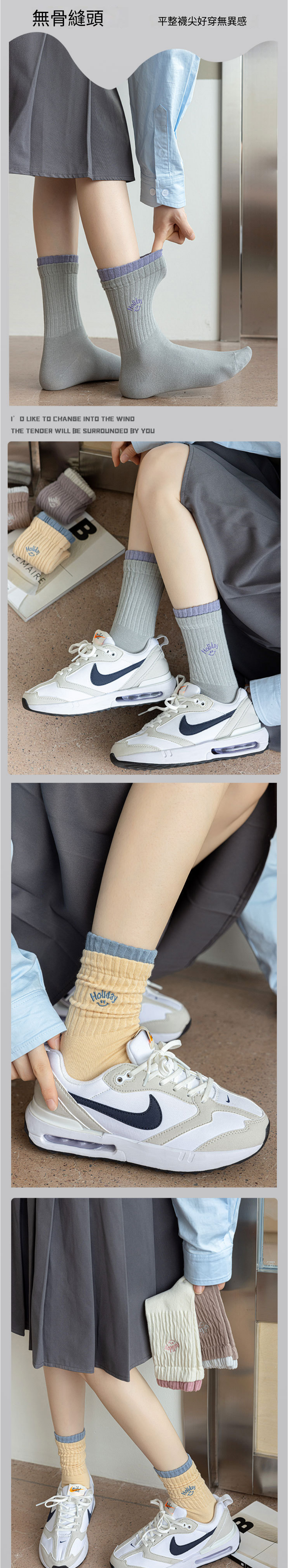 熱推(2雙裝)女拼色笑臉刺繡堆堆襪(白色)(均碼)