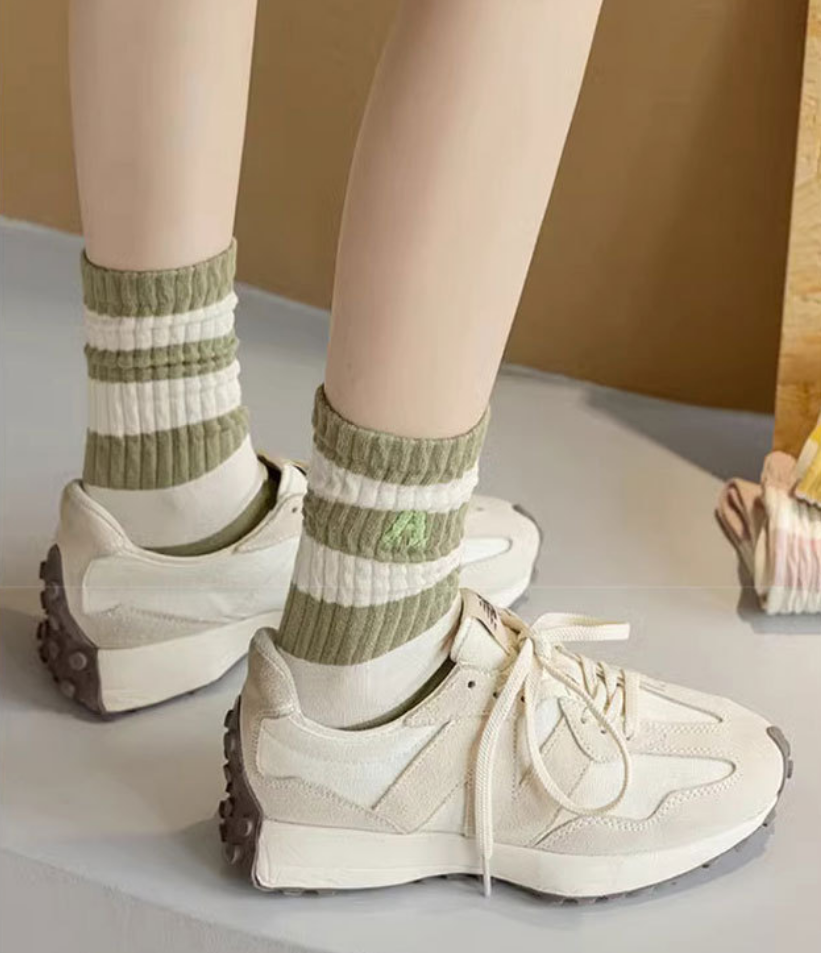 熱推(2雙裝)女日繫條紋刺繡堆堆襪(字母T)(均碼)