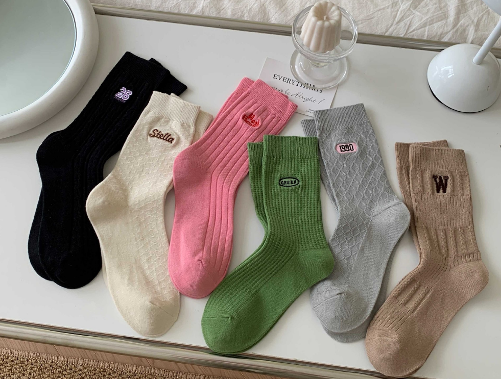 熱推(2雙裝)女韓版刺繡中筒襪(灰色)(均碼)