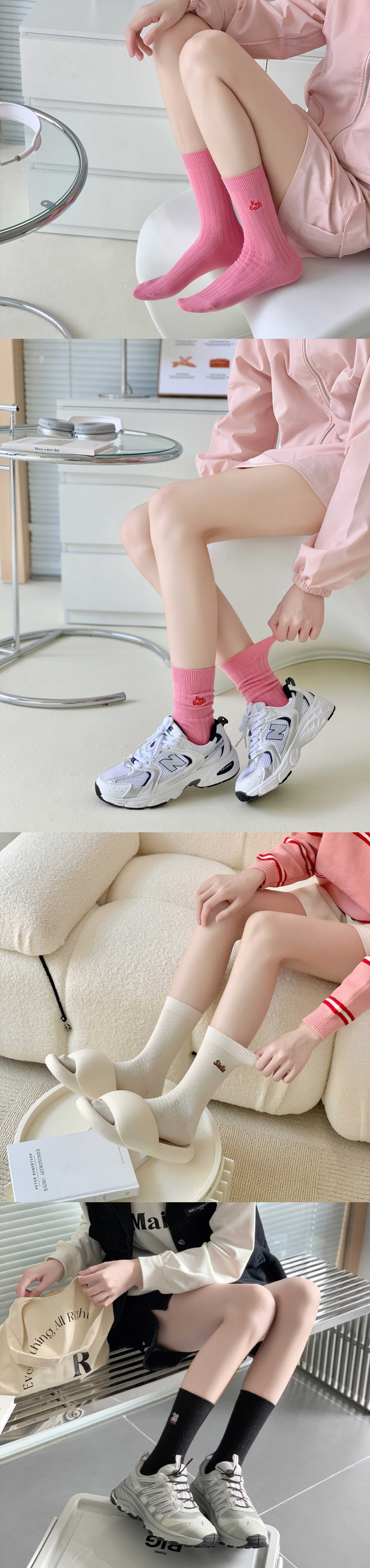 熱推(2雙裝)女韓版刺繡中筒襪(綠色)(均碼)