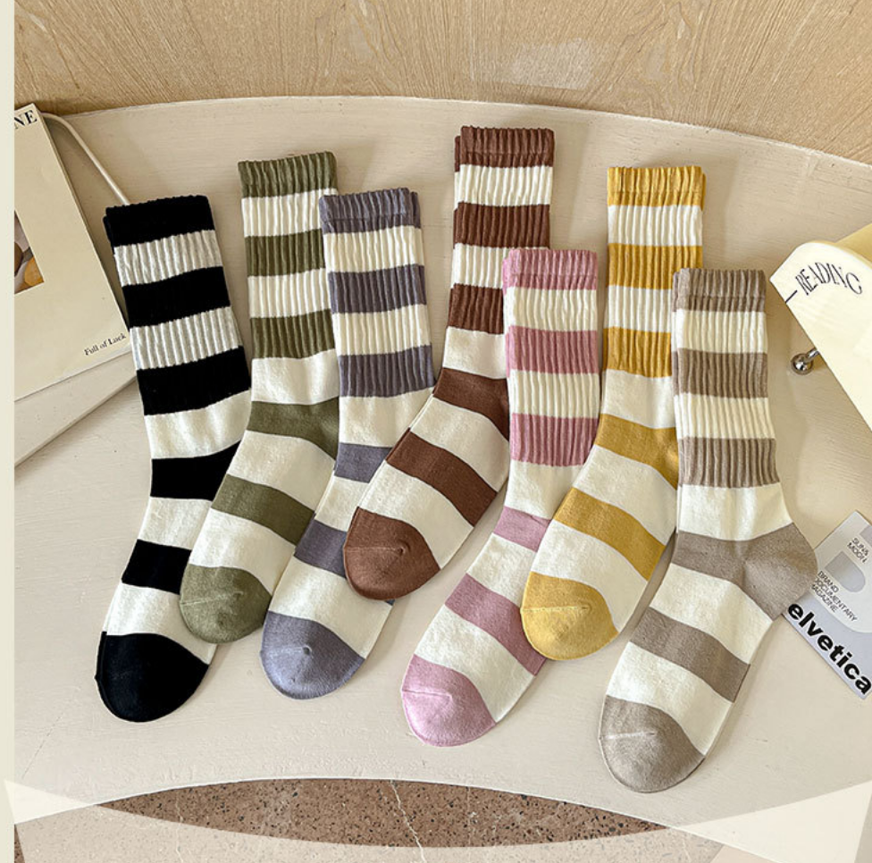 熱推(2雙裝)女褶皺羅口高橡實中筒襪(紫色)(均碼)