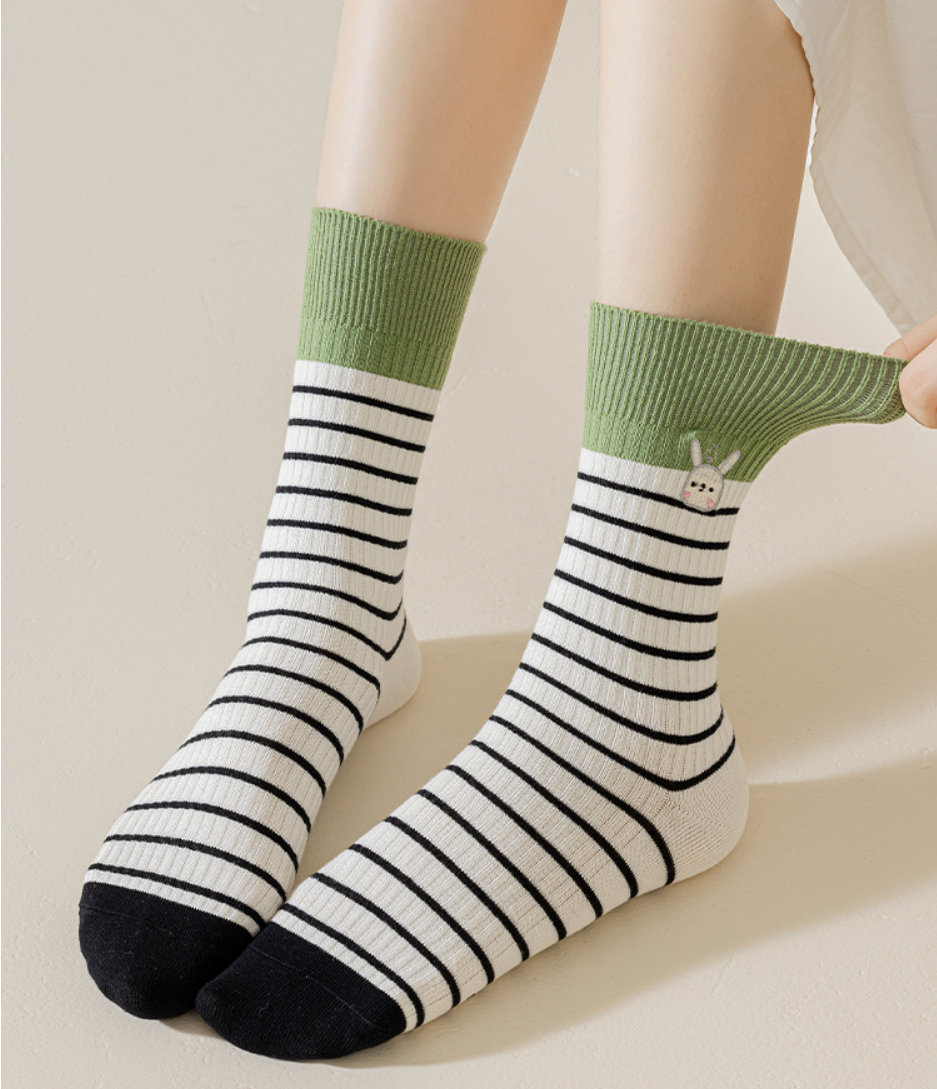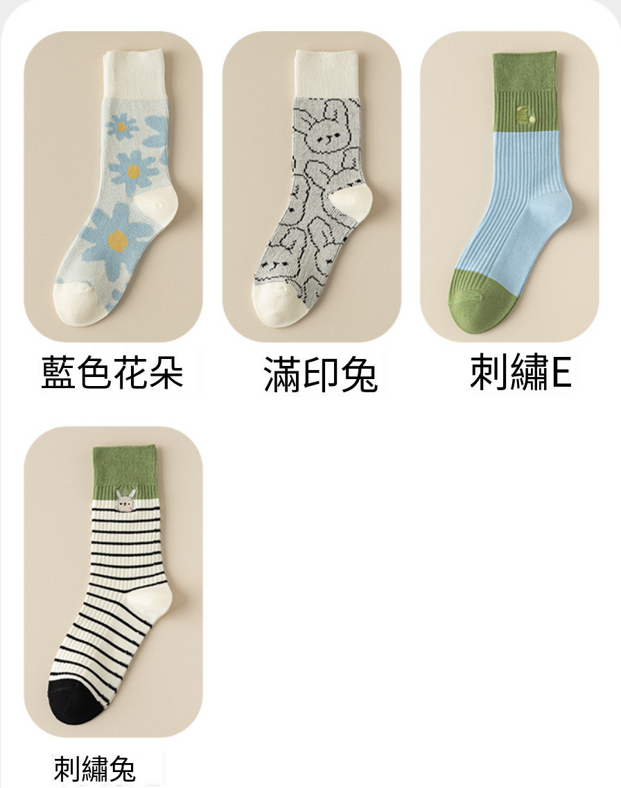 熱推(2雙裝)女吸汗不勒腳刺繡堆堆襪(刺繡兔)(均碼)