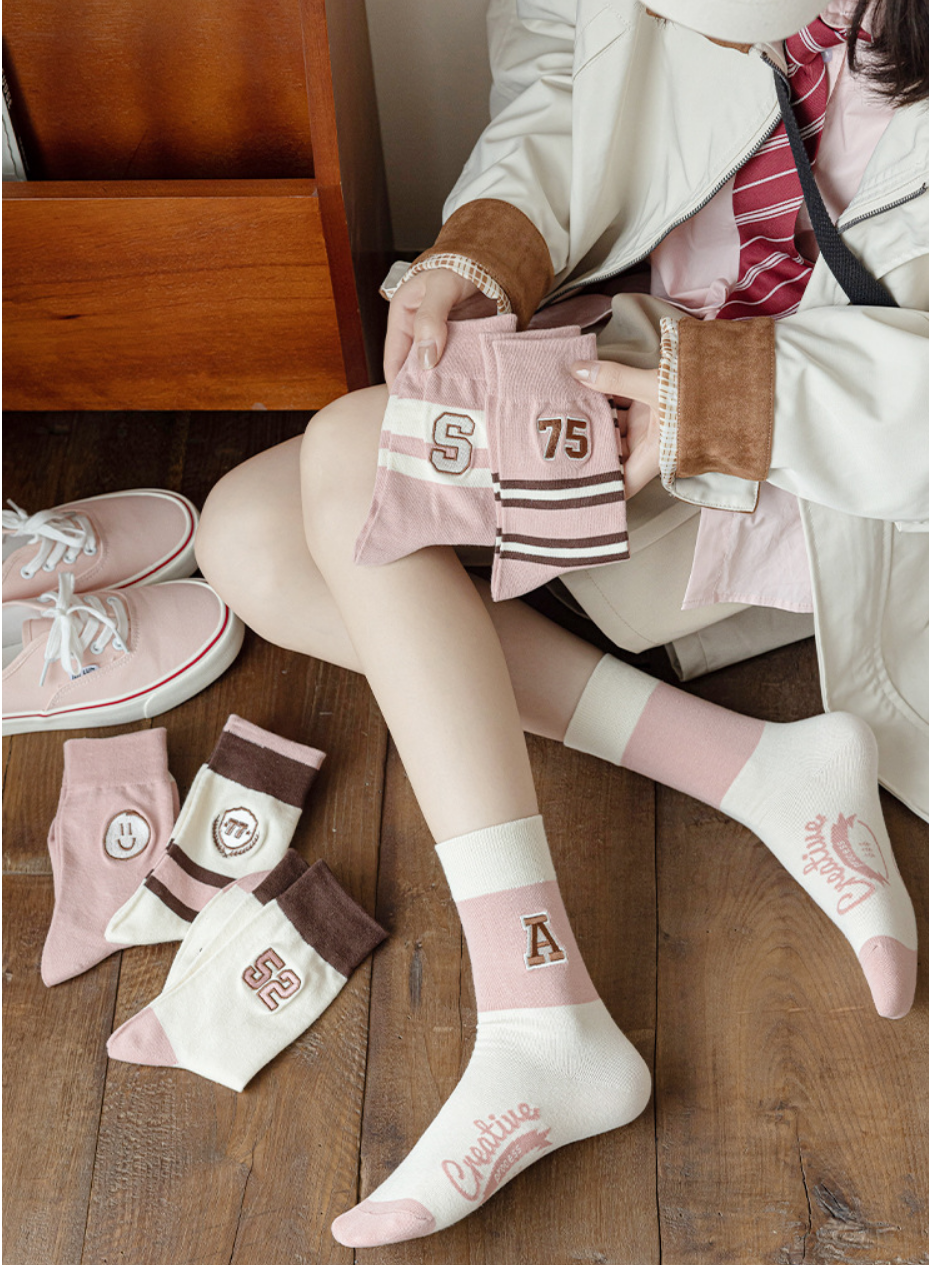 熱推(2雙裝)女百搭刺繡棉襪(刺繡A)(均碼)