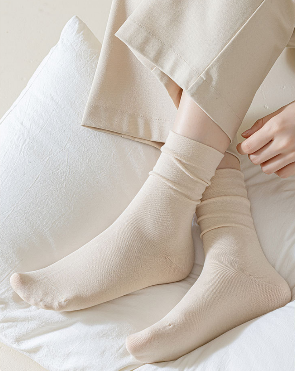 熱推(3雙裝)女純色吸汗堆堆襪(卡其)(均碼)