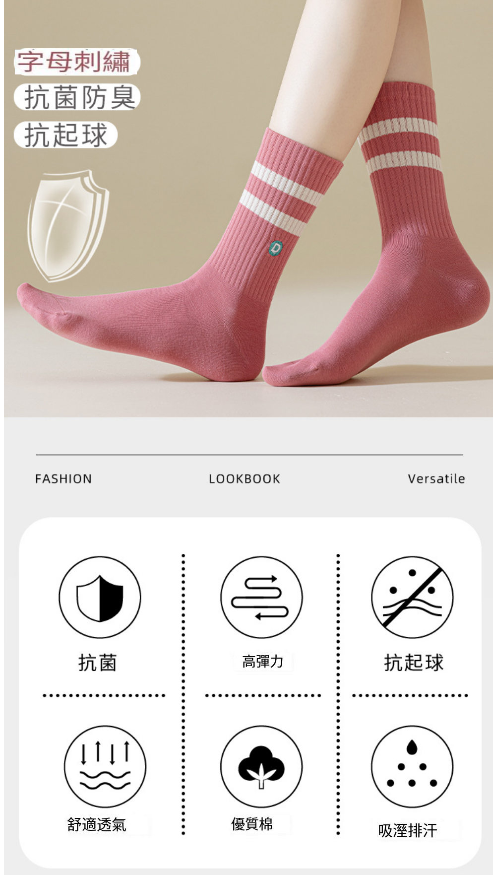 熱推(3雙裝)女百搭條紋中筒襪(粉紅)(均碼)