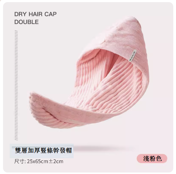 熱推3D條紋雙層蓬松幹發帽【淺粉色】
