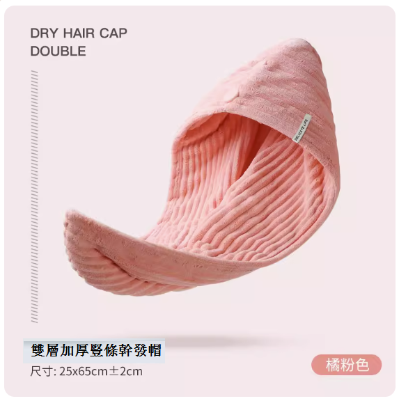 熱推3D條紋雙層蓬松幹發帽【橘粉色】