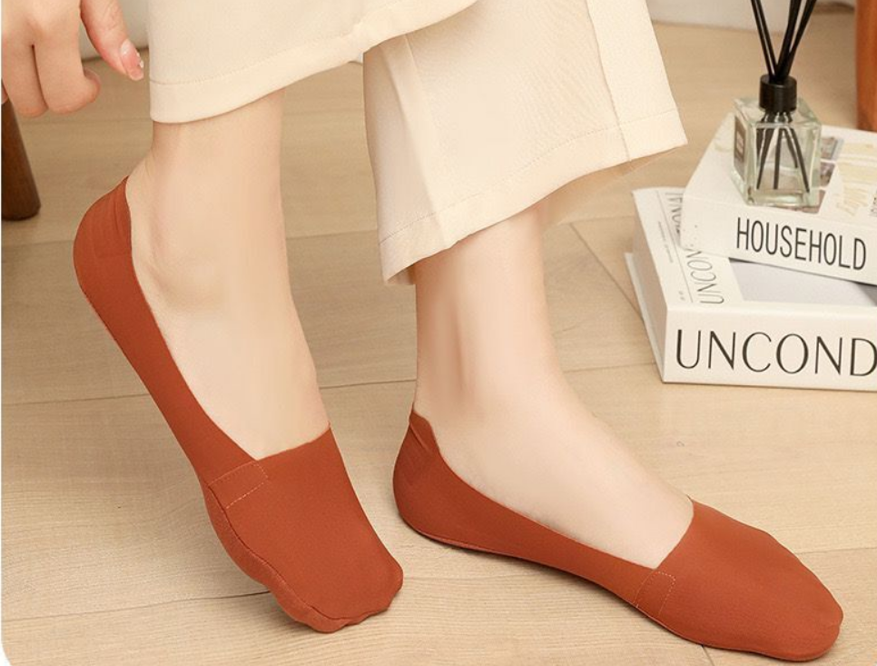 熱推(5雙裝)女冰絲面棉底船襪(膚色)(均碼)