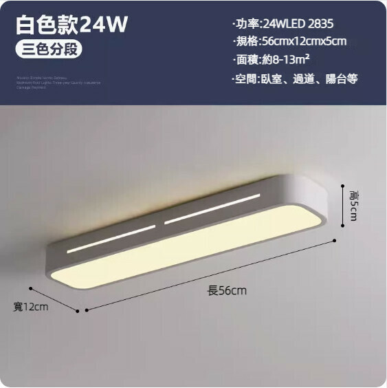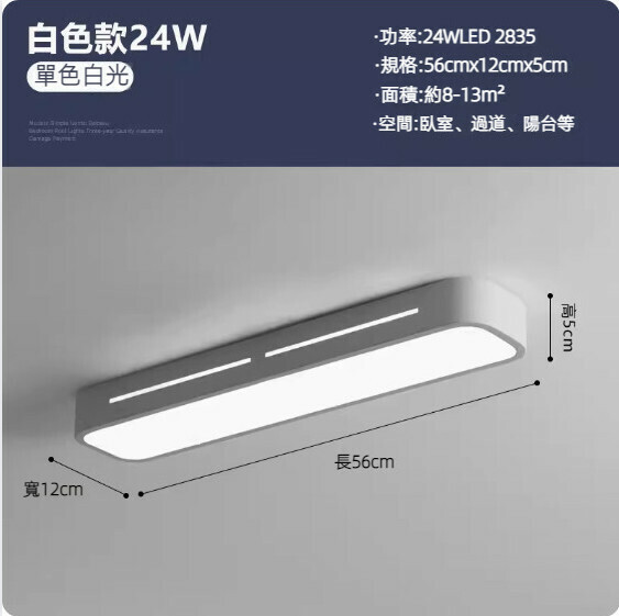 熱推陽台走廊長方形超薄led吸頂燈(黑色款66cm)【30W單色白光】
