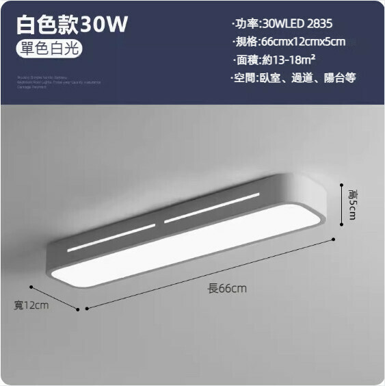 熱推陽台走廊長方形超薄led吸頂燈(白色款66cm)【30W單色白光】