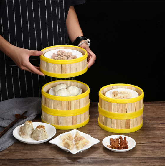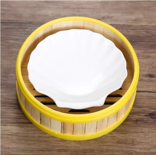 熱推竹制蒸籠(貝殼碟+蒸籠)(規格:15CM碟子+20CM蒸籠)