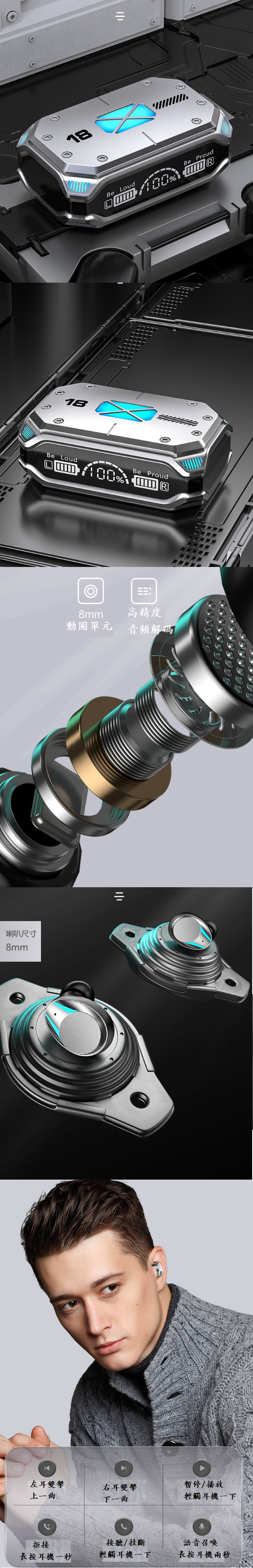 熱推藍牙耳機(M41科技銀【産品體積6cm * 5cm *3cm】)