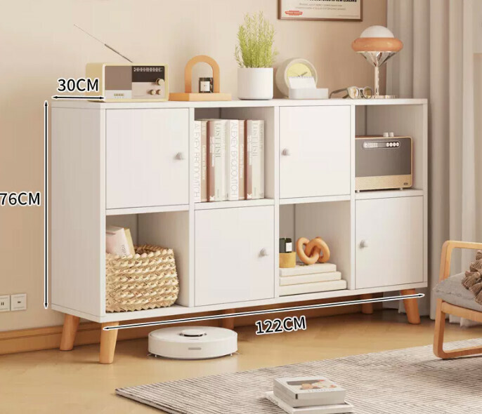 熱推書架置物架落地書櫃(帶腿四格四門暖白色)