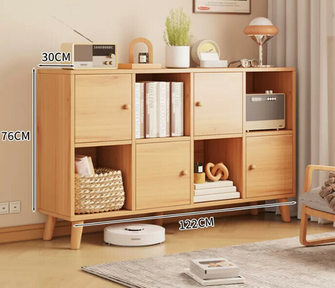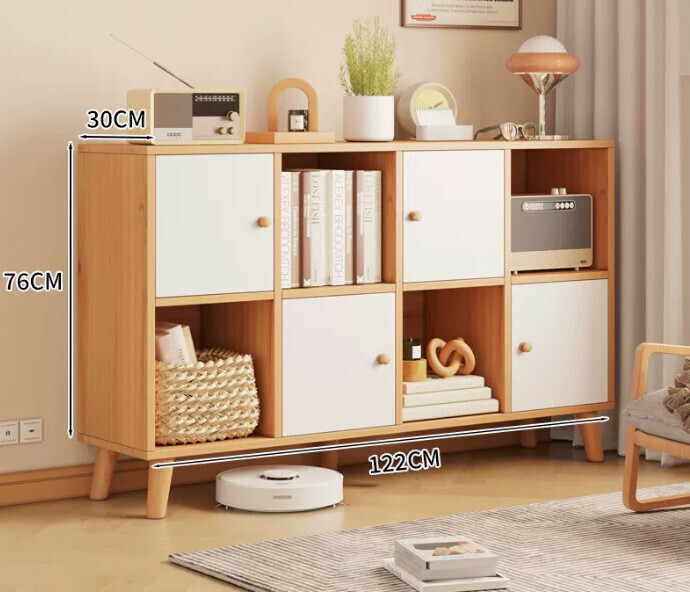 熱推書架置物架落地書櫃(帶腿四格四門原木色)