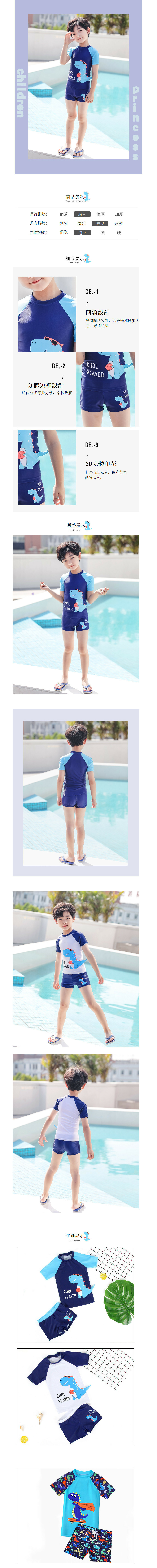 熱推男童舒適游泳衣(湖藍恐龍(含帽))(M-5XL)(下單後跟客服聯系發貨的尺寸)