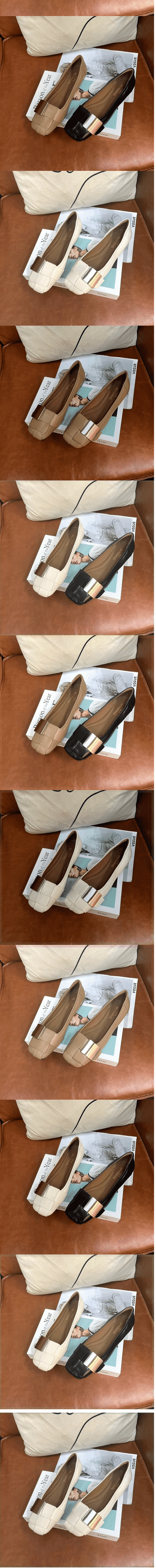 熱推編織金屬扣淺口低跟單鞋(米白色/35-40碼)(下單後聯絡客服確認發貨尺碼)