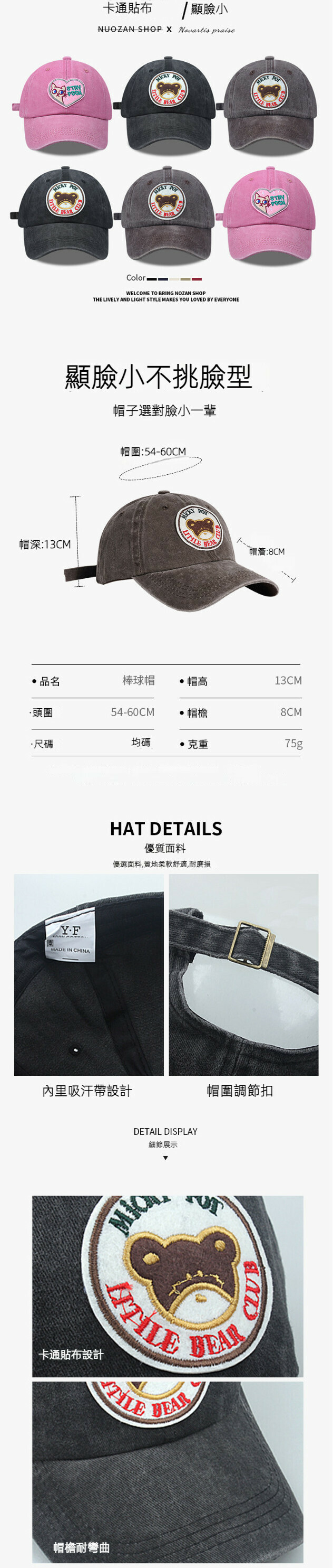 熱推卡通貼布水洗做舊軟頂鴨舌帽(326CHT黑色小熊)