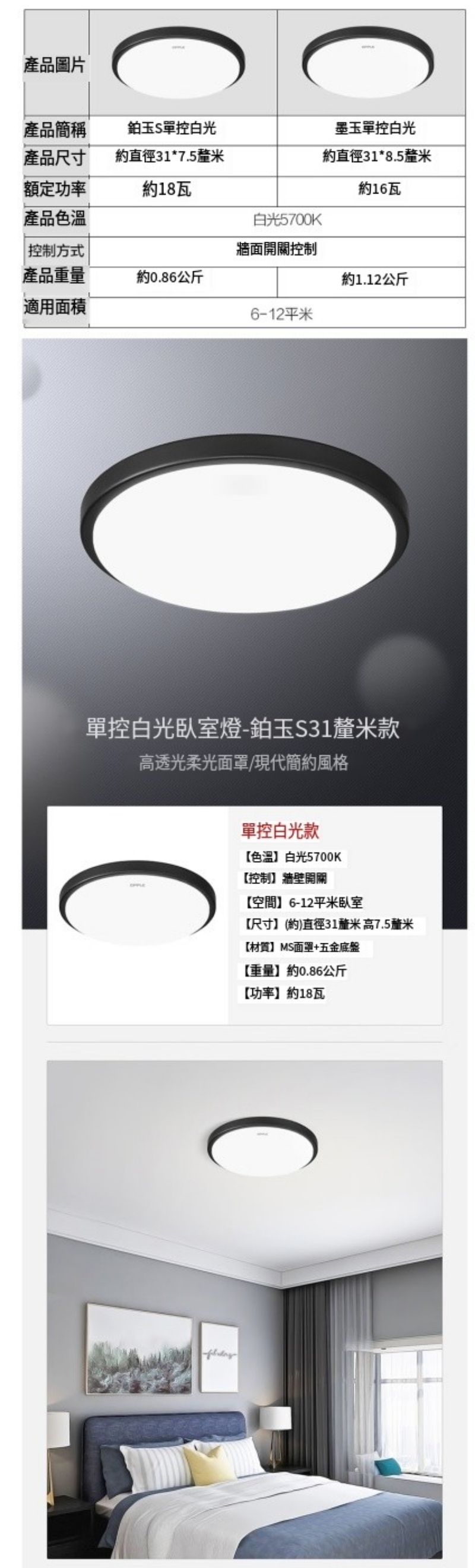 熱推吸頂燈【純白款】三色/直徑約40cm