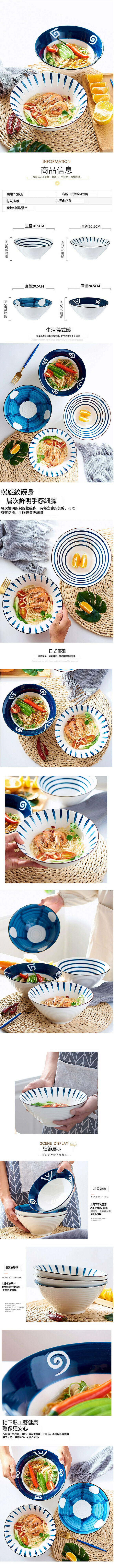熱推陶瓷大號湯面碗鬥笠拉面碗甜品沙拉碗單個泡面碗(鬥笠碗藍條紋 )