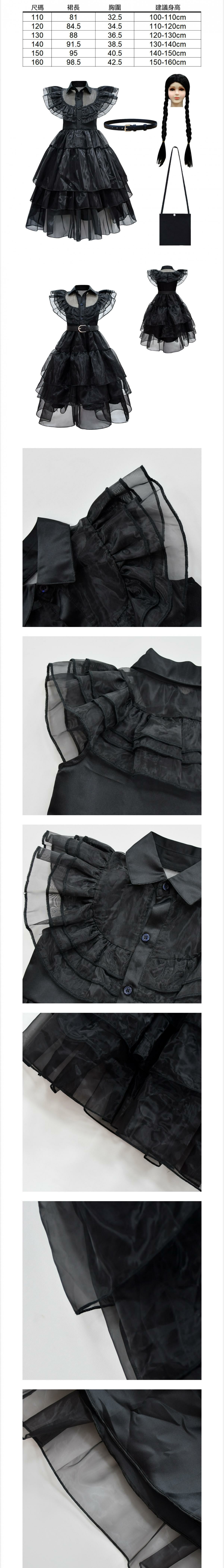 熱推兒童網紗連衣裙(81236+腰帶+包包+黑色假髮)(尺碼:110-160)(下單後聯絡客服確認發貨尺碼)