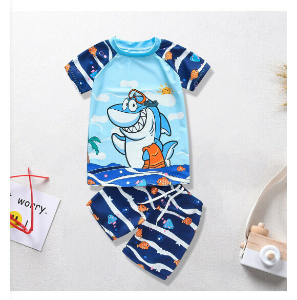 熱推兒童分體短袖泳裝【M-XL碼】【藍底椰樹】(下單後聯絡客服確認發貨尺碼)