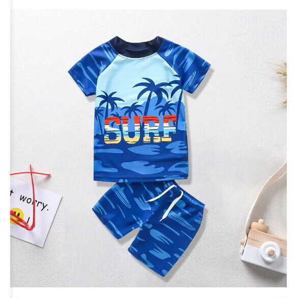 熱推兒童分體短袖泳裝【M-XL碼】【湖藍底大嘴鯊魚】(下單後聯絡客服確認發貨尺碼)