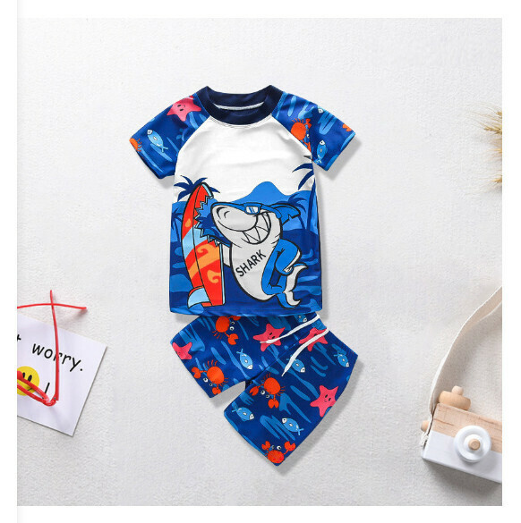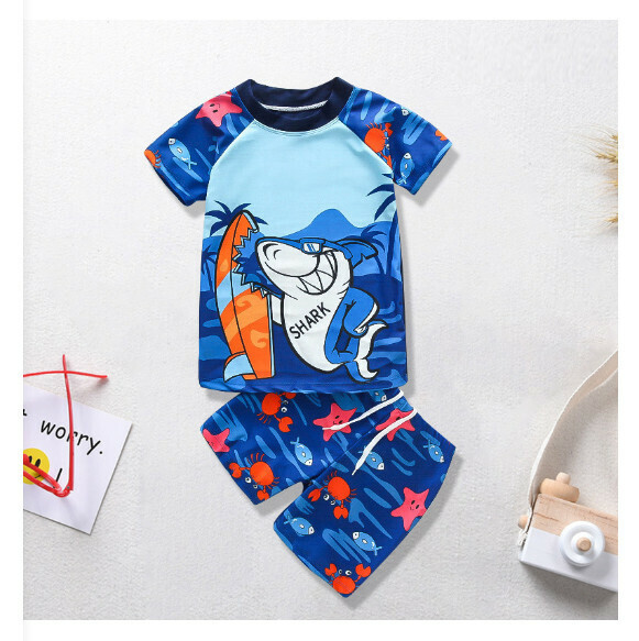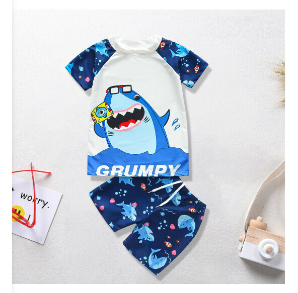 熱推兒童分體短袖泳裝【M-XL碼】【白底小螃蟹】(下單後聯絡客服確認發貨尺碼)