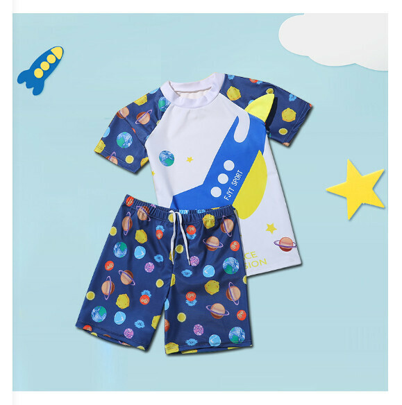 熱推兒童分體短袖泳裝【M-XL碼】【白色鯊魚】(下單後聯絡客服確認發貨尺碼)