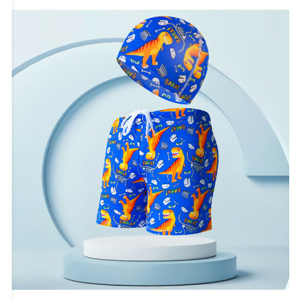 熱推兒童泳褲帶泳帽套裝【均碼(身高110-125CM,30-50磅)】【黃底小恐龍-18】