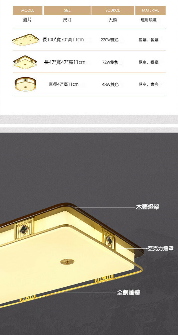 熱推中式全銅吸頂燈(81120-100x70cm)