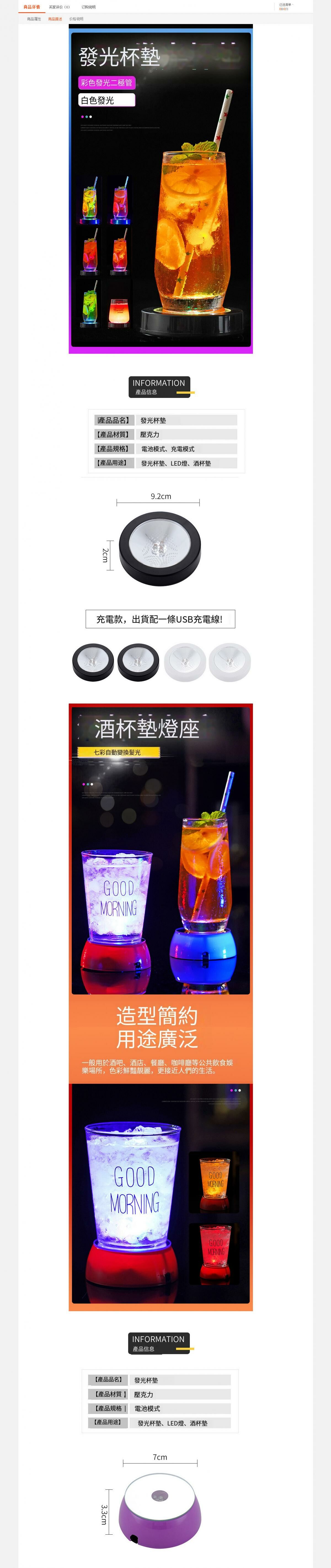 熱推杯墊燈座酒墊發光杯墊(圓形透明+白光-【2個裝】)
