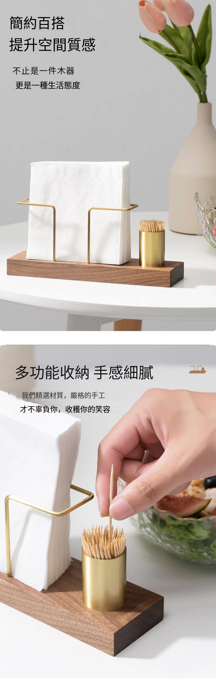 熱推創意桌面紙巾架(胡桃木款-紙巾架牙籤架一體款)