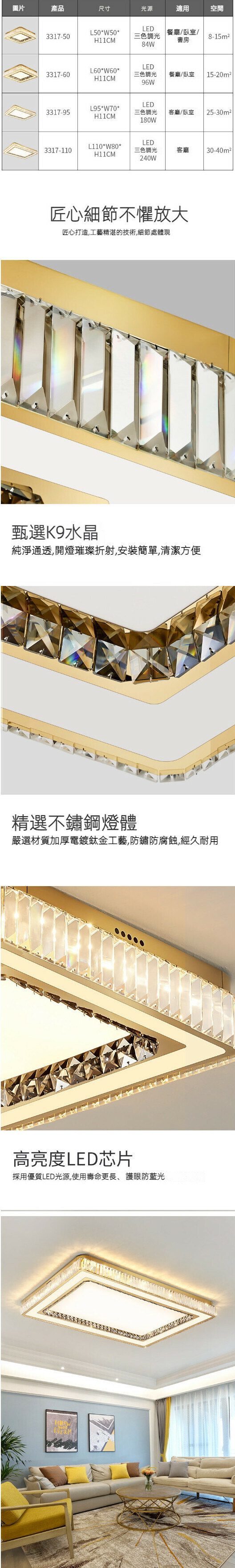 熱推水晶吸頂燈(圓形-直徑50cm)【LED三色變光】