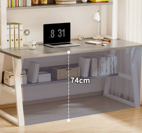 熱推臺式電腦桌(雙層雙抽白架+莫蘭迪灰色)【尺寸:長120*寬60*高147cm】
