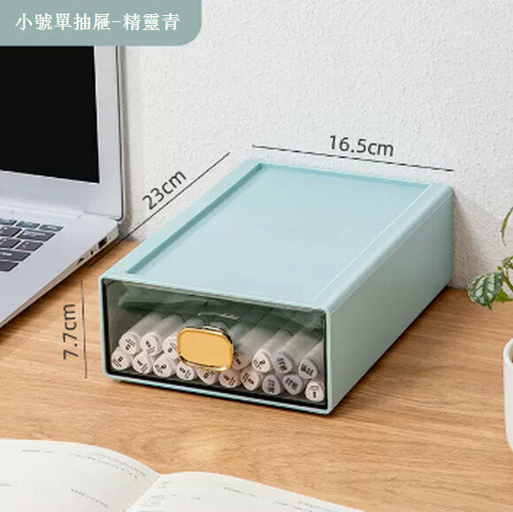 熱推桌面抽屜式收納盒【金色把手--精靈青(小號雙抽屜)】