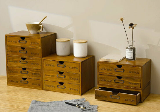熱推桌面收納儲物盒【舊色圓頭四抽屜】