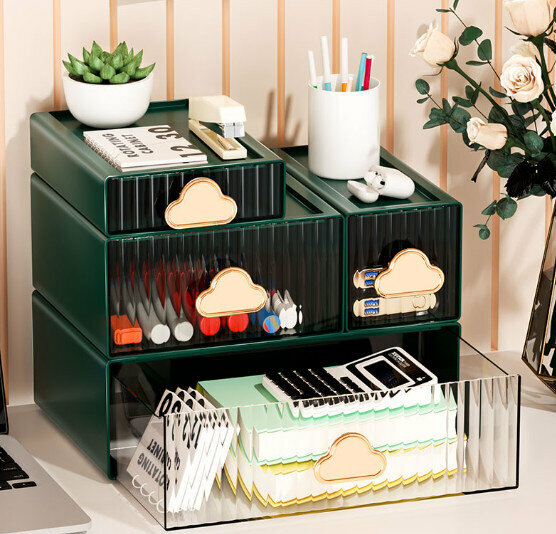 熱推桌面收納盒【白色3層組合(4扁中+1加大)】