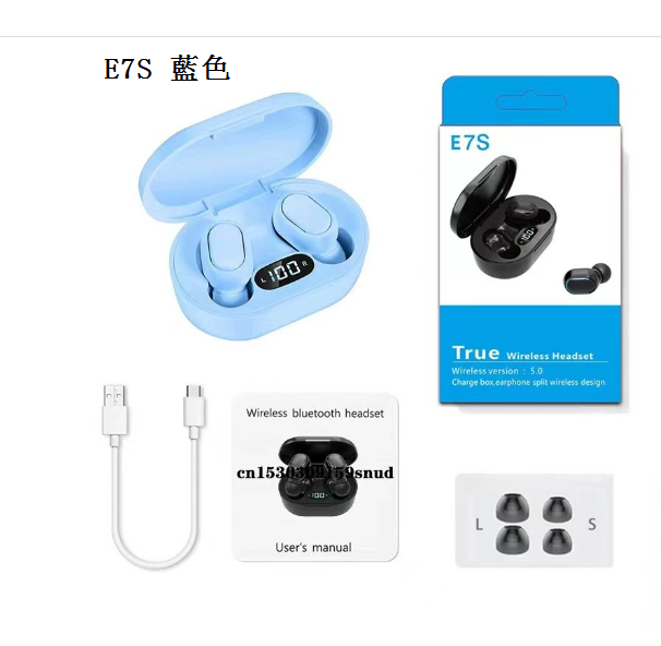熱推數顯藍牙耳機(E7S 藍色【産品體積6cm * 4cm *3cm】)