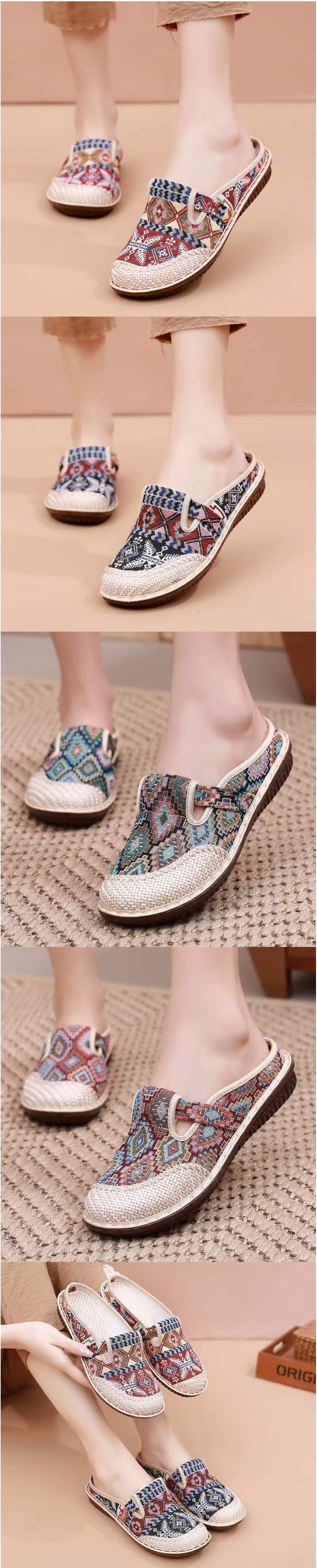 熱推民族風淺口平跟女式布鞋(方格紅色)(尺碼:36-40碼)(下單後請聯絡客服確認發貨尺碼)