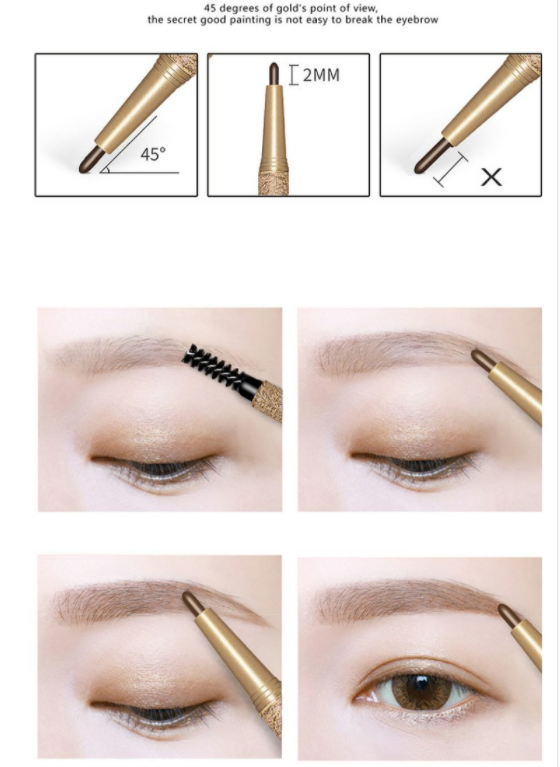 熱推眉筆防水防汗持久不脫色雙頭帶刷(3#)(淺咖色)
